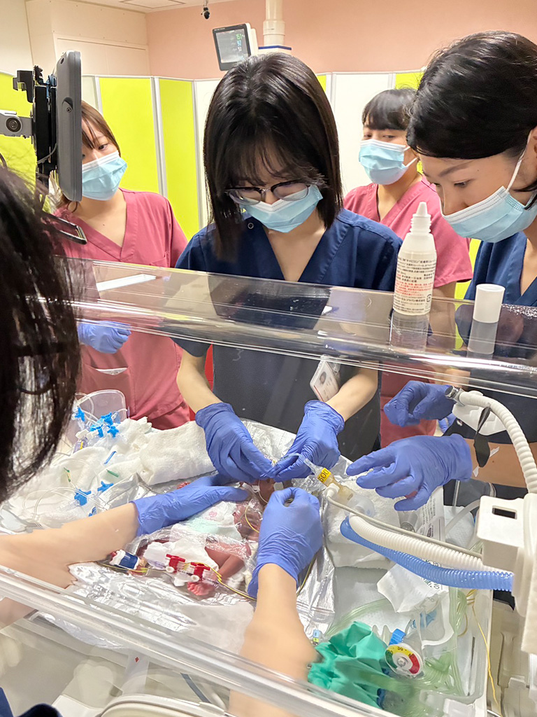 現在は京都第一赤十字病院のNICUで勤務しており、主治医として診療にあたるほか、ドクターカーでの新生児搬送、学会発表、論文執筆、臨床研究責任者としての研究活動など、充実した日々を過ごしています。