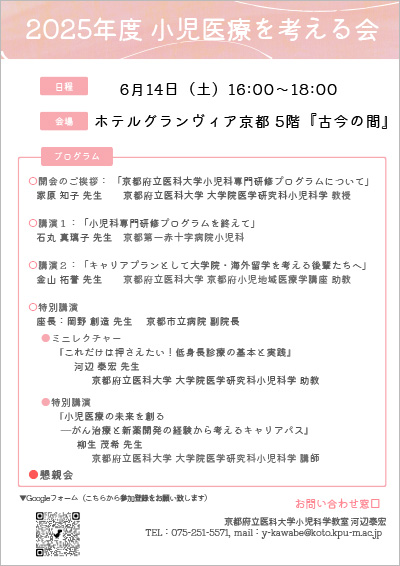 2025年6月14日(土)に「小児医療を考える会」を開催いたします。